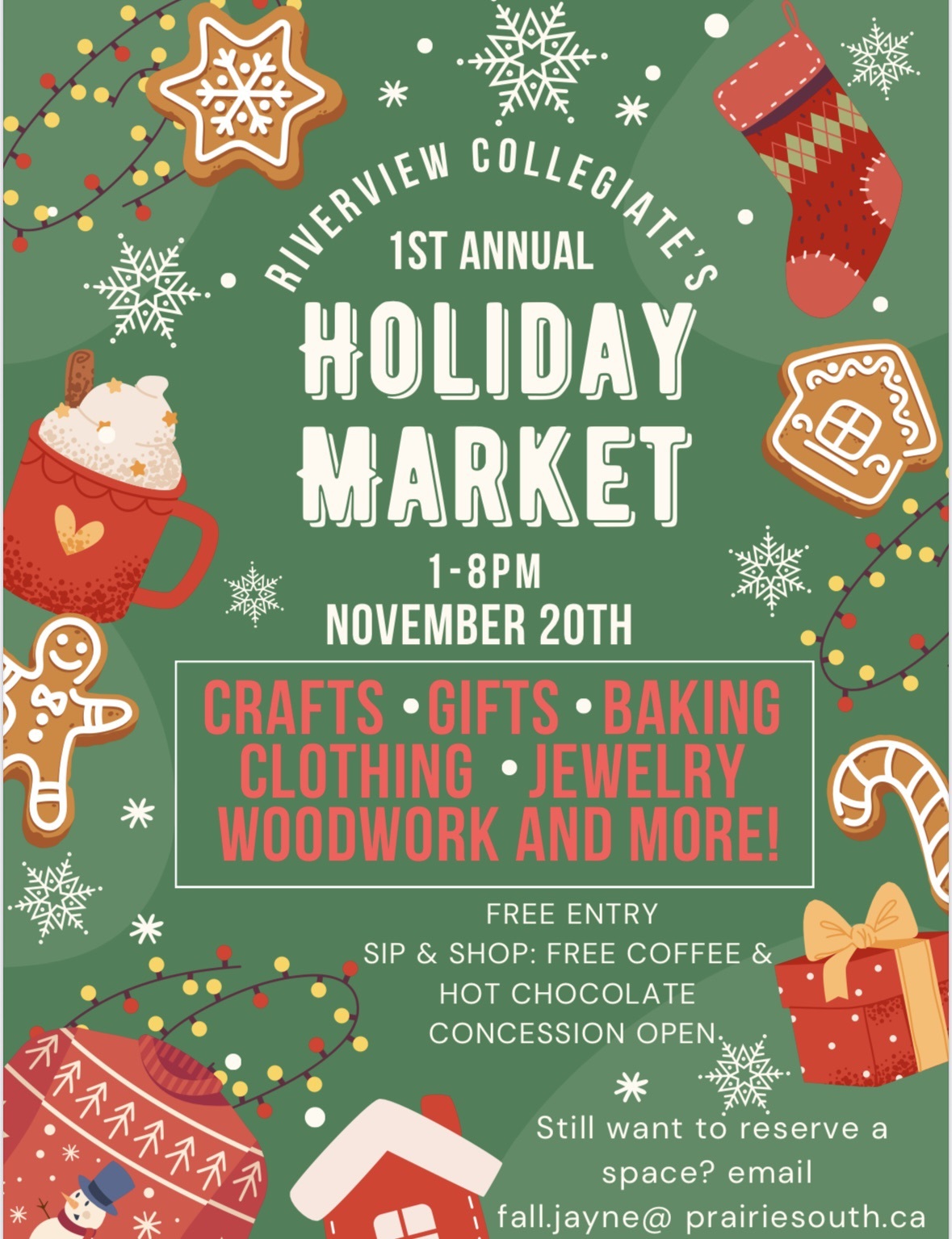 Come shop and check out all of our vendors. Free coffee and hot chocolate