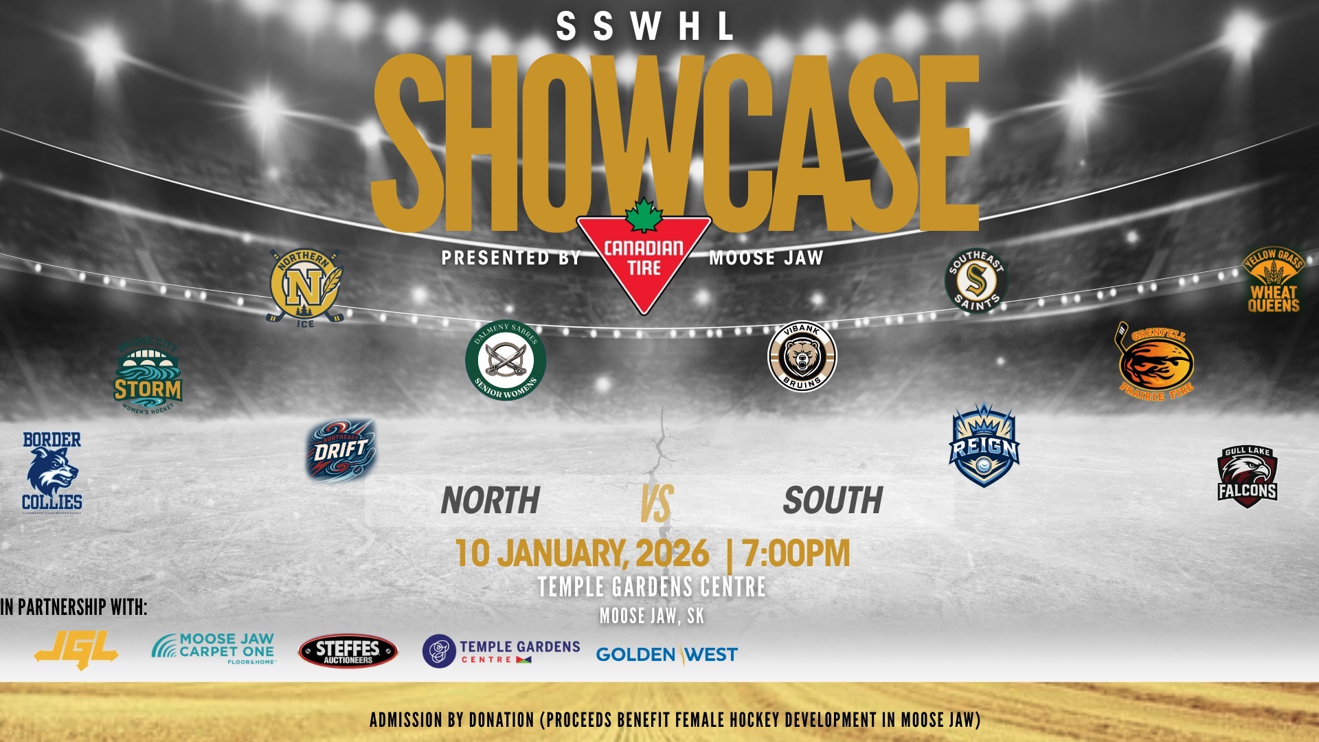• Admission: By donation at the door — 100% of gate proceeds going to support female hockey development in Moose Jaw