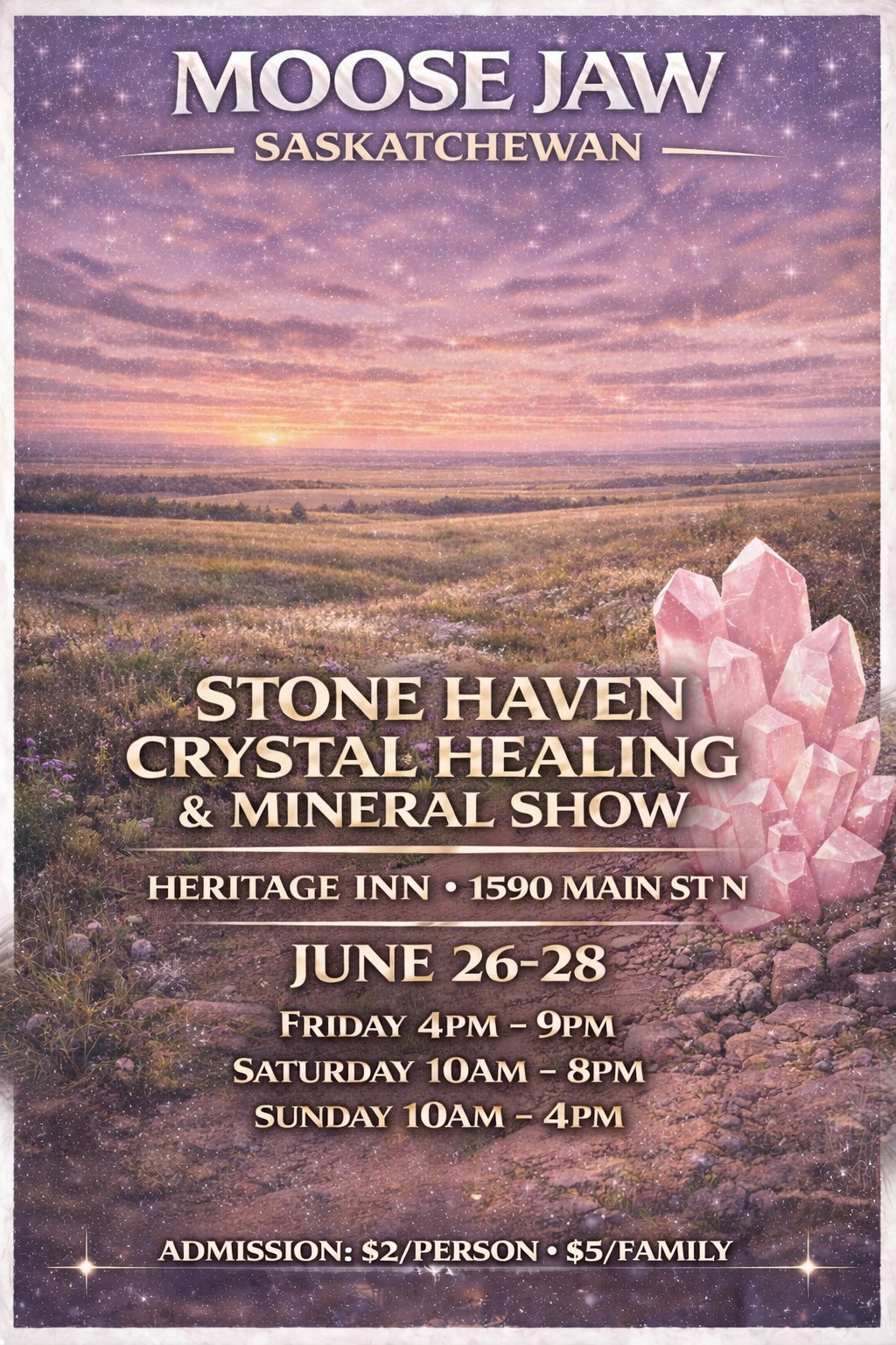 📍 MOOSE JAW Step into a world of crystals, minerals, energy, and wonder at the Stone Haven Crystal Healing & Mineral Show!