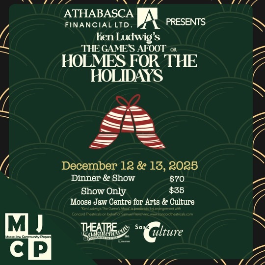 Proudly presented by our friends at Athabasca Financial, join the Moose Jaw Community Players in this production of Ken Ludwig's Holmes for the Holidays (or The Game's Afoot)!
