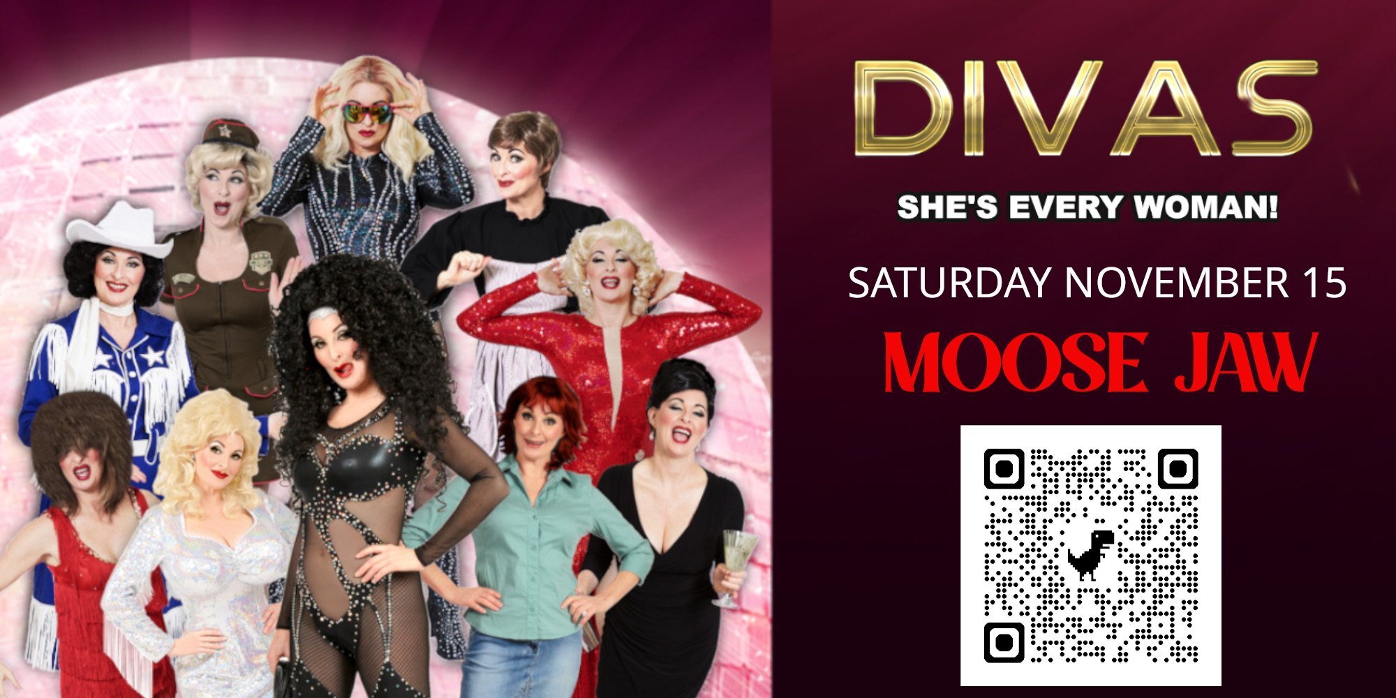 Saturday November 15th DIVAS - She's Every Woman returns to Moose Jaw Tickets $30 available online or at the door https://moosejawdivas.bpt.me