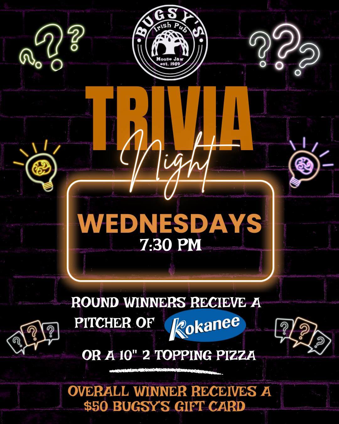 Play trivia at Bugsy's Irish Pub every Wednesday at 7:30 pm!